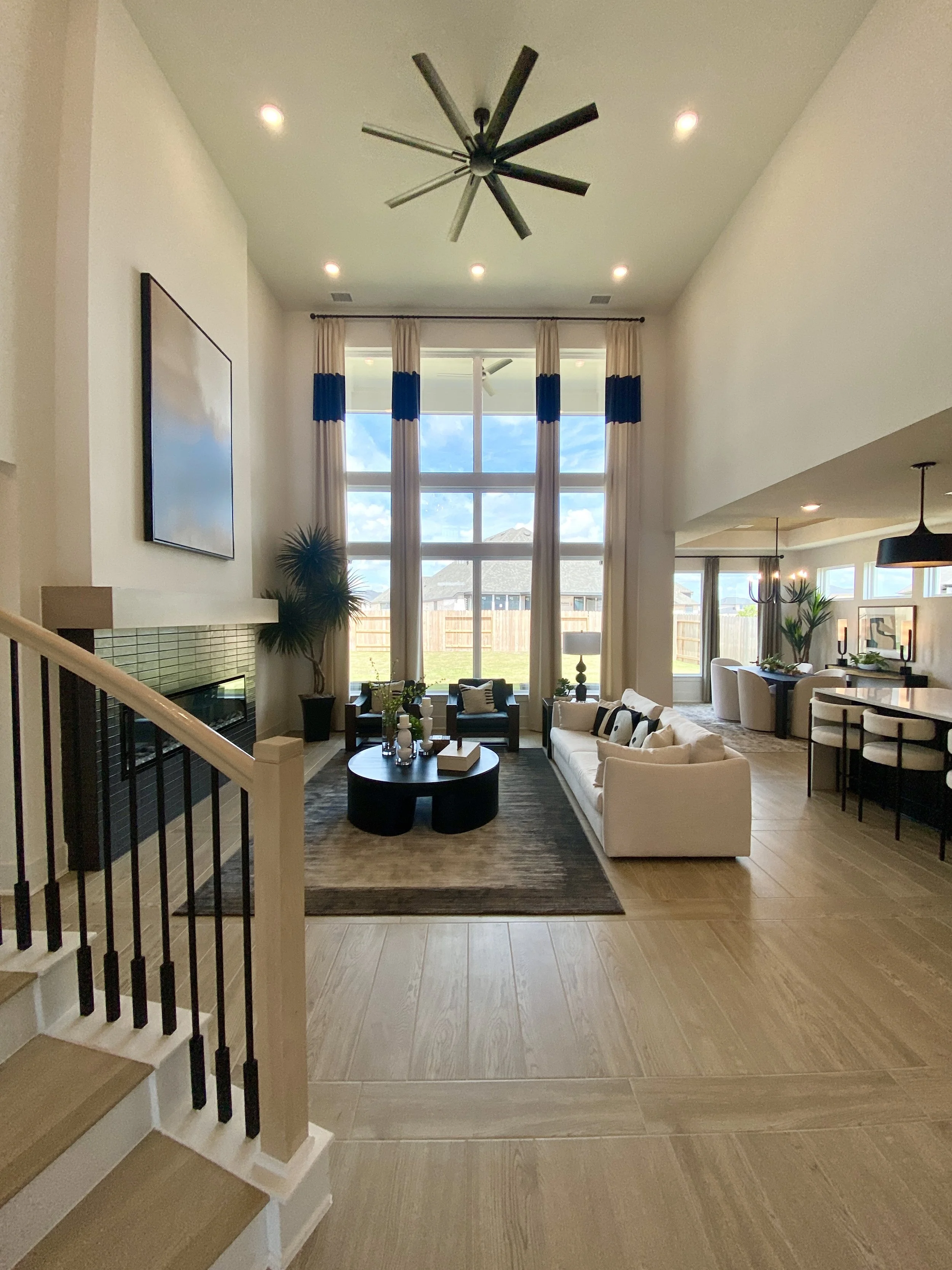 Westin Homes is famous for their winding staircases and dramatic ceilings.